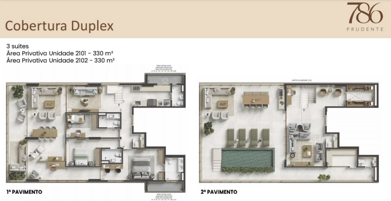 Coberturas Duplex de quartos 3 Suítes com 330m².